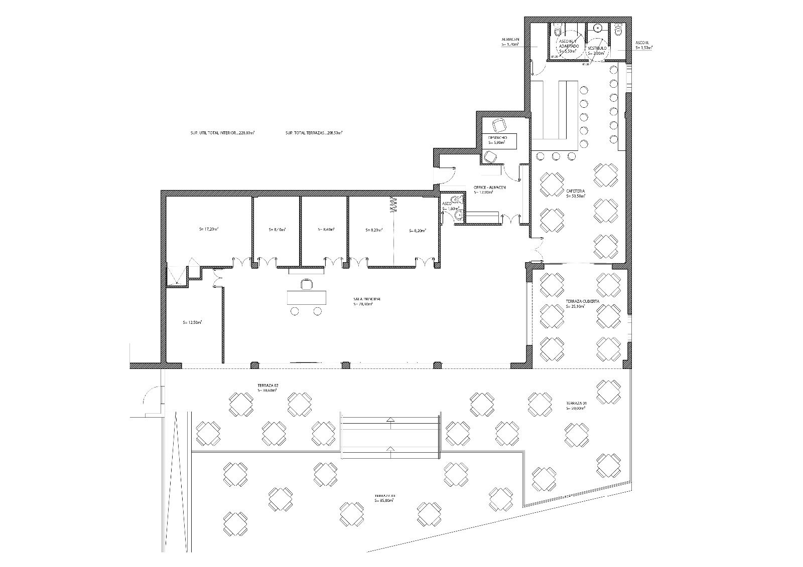 Das Geschäftslokal befindet sich in einer privilegierten und strategischen Lage der Stadt und verfügt über 229 Quadratmeter Nutzfläche und 208 Quadratmeter Terrasse, was ihm eine enorme Geräumigkeit verleiht und es zweifellos zu einer unvergleichlichen Option für jeden Geschäftsbetrieb macht, der prosperieren möchte.