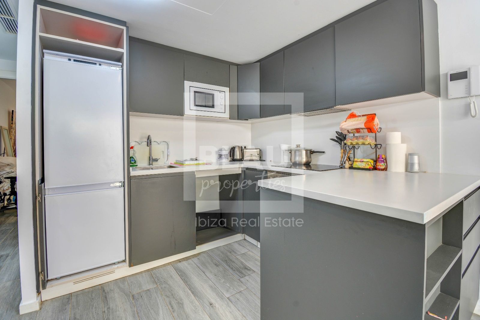 Derzeit ist diese Immobilie saisonal vermietet, daher wird sie ab November bezugsfertig sein, aber ein sofortiger Kauf mit Mietern ist möglich. Mit einer bebauten Fläche von 52,00 m2, einem Garten von 43,00 m2, einem Schlafzimmer, einem Bad, Einbauschränken, einer möblierten Küche, Klimaanlage und allen Annehmlichkeiten, die für das Leben auf Ibiza erforderlich sind.